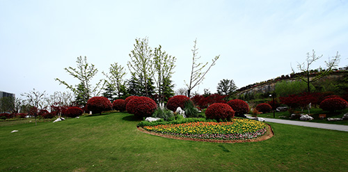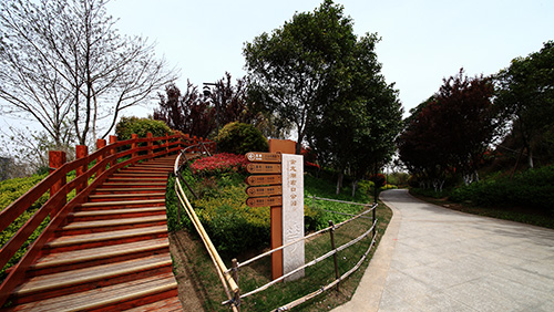 為恢復植被,修復裸露的山體,工程中應(yīng)用了大量的植物,其中,榔榆、喜樹、樸樹、三角楓、黑松、香樟、銀杏、無患子、女貞、欒樹、七葉樹、五角楓、楓香、雪松、烏桕、廣玉蘭、黃連木、黃金槐、馬褂木等喬木50余品種,2.3萬余株,鄉(xiāng)土樹種占88%;垂絲海棠、映山紅、櫻花、紫薇、金絲繡球、含笑、紫葉李、茶梅、紅梅、紅櫨等花灌木100余品種,2.5萬余株;紅葉石楠、金森女貞、扶芳藤、南天竹、灑金珊瑚、水果蘭、六道木、檉柳、衛(wèi)矛、無刺枸骨、毛鵑、連翹、金鐘、迎春、紅花檵木等綠籬40余品種,面積約4.1萬平方米;各種宿根、球根、時令花卉和水生植物,如薰衣草、金雞菊、郁金香、鳶尾、牡丹、金絲桃、珍珠梅、繡線菊、美人蕉、荷蘭菊、蒲公英、亞菊、玉龍草、八仙花、瓊花、月季、薔薇等80余品種,面積約2.8萬平方米;鋪設(shè)草坪及地被麥冬等面積約8.7萬平方米。豐富的植物應(yīng)用,使得原本裸露的山坡披上了綠色的盛裝,公園內(nèi),春有百花爭艷,夏有綠蔭匝地,秋有金色滿園,即使到了冬天,也仍能看到滿山的綠色與生機。