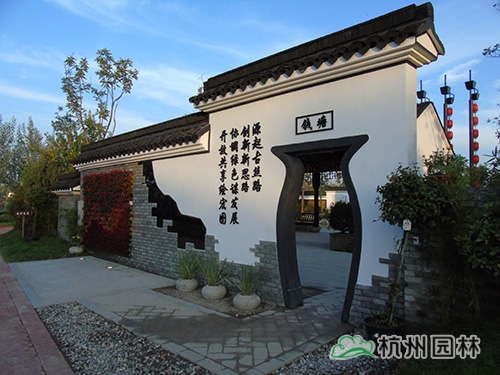 “浙江園以‘浙?鄉(xiāng)?綢’為設(shè)計(jì)主題,采用傳統(tǒng)浙江園林造景手法,以寫意的自然山水,展現(xiàn)浙江獨(dú)特的水網(wǎng)密布的地理地貌、小橋流水的江南韻味以及水鄉(xiāng)的蠶、茶文化,詮釋‘夢回江南、絲路通商’的概念,力求打造‘良渚源、蠶茶鄉(xiāng)、古韻風(fēng)、新思路’的歷史情境,巧妙植入園林新技術(shù)、新工藝、新品種,展示‘越溪浣紗、陌上錦霞、古道尋遺、煙氣汀州、絲路新語’等現(xiàn)代浙江園林景觀新風(fēng)貌?!笔┕がF(xiàn)場負(fù)責(zé)人方禮銀將“浙江園”的設(shè)計(jì)理念娓娓道來。