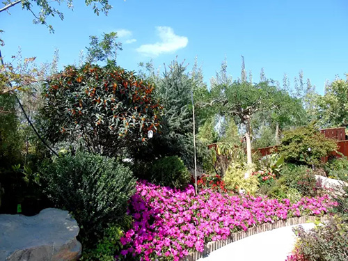 花博會(huì)開(kāi)放時(shí)間是9月份,為配合開(kāi)園需要,根據(jù)不同植物的開(kāi)花特性及要求,采取相應(yīng)的措施,確保植物的最佳觀賞效果。桂花是杭州市市花,是集綠化、美化、香化于一體的優(yōu)良園林樹(shù)種,一般在仲秋時(shí)節(jié)綻放,“浙江園”的桂花全部精選自杭州畫(huà)境種業(yè)有限公司,提前運(yùn)送至銀川之后,利用當(dāng)?shù)氐牡蜏丨h(huán)境誘使其完成花芽分化,在開(kāi)園時(shí)營(yíng)造了桂花滿樹(shù)、滿園飄香的氛圍。八仙花又名繡球,花大色美,是長(zhǎng)江流域著名觀賞植物,在明、清時(shí)代建造的江南園林中就栽有八仙花。特別是八仙花‘無(wú)盡夏’具有多次開(kāi)花的特點(diǎn),項(xiàng)目人員通過(guò)修剪、培育,促進(jìn)其花芽的再次分化,使展園內(nèi)的八仙花處于生長(zhǎng)繁茂、花團(tuán)錦簇的良好狀態(tài)。此外,還結(jié)合公司“一種紅楓快速成景方法”等專利,運(yùn)用摘葉等形式促進(jìn)槭樹(shù)科植物萌發(fā)新葉,為九博會(huì)的開(kāi)幕增添新的色彩。