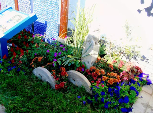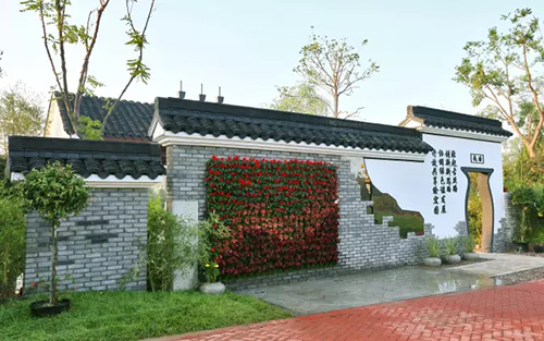 考慮到銀川的干燥氣候,垂直綠化墻植物的保濕成為難題。“浙江園”垂直綠化墻以無(wú)紡布為墻體材料,使用保濕性強(qiáng)的基質(zhì),優(yōu)選植物種類,同時(shí)搭配滴灌系統(tǒng),保證了綠化墻鮮花擁簇的景象。展園內(nèi)的垂直綠化墻設(shè)計(jì)簡(jiǎn)潔、曲線優(yōu)美,與以錢塘江文化為主題的背景墻相互映襯,共同展現(xiàn)了新時(shí)期浙江園林景觀的不斷發(fā)展與創(chuàng)新。