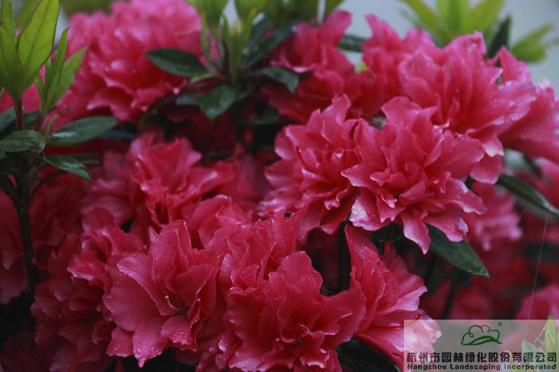 ‘常春3 號’、‘紅陽’、紅纓’、‘紫秀’、‘春詩’等杜鵑花;‘金玉’桂花、‘串銀球’桂花、‘玉簾銀絲’桂花;‘金菊3 號’菊花、‘仙斛3 號’鐵皮石斛等藥用植物;‘御金香’、‘黃金芽’等茶葉……這些獨具浙江特色的植物新品種的展示,充分展現(xiàn)了浙江園林園藝植物新品種開發(fā)的豐碩成果。4月29日,北京世園會開園期間,通過品種選擇,浙江園內(nèi)的杜鵑正迎來盛花期,紅色、粉色、白色的杜鵑花將展園妝點得姹紫嫣紅,充滿了熱鬧喜慶的氛圍。