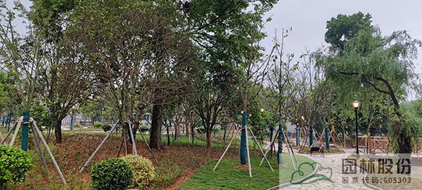 公園內(nèi)部增加流線型道路系統(tǒng),以復層式開敞組團進行植物配置,以楓香為主題植物,搭配烏桕、樸樹、櫸樹、柳樹等配景植物,下層種植美人蕉、石蒜、麥冬等,豐富植物層次,營造較為有序且精致的植物景觀,同時設(shè)置景石、景觀小品等增加亮點。