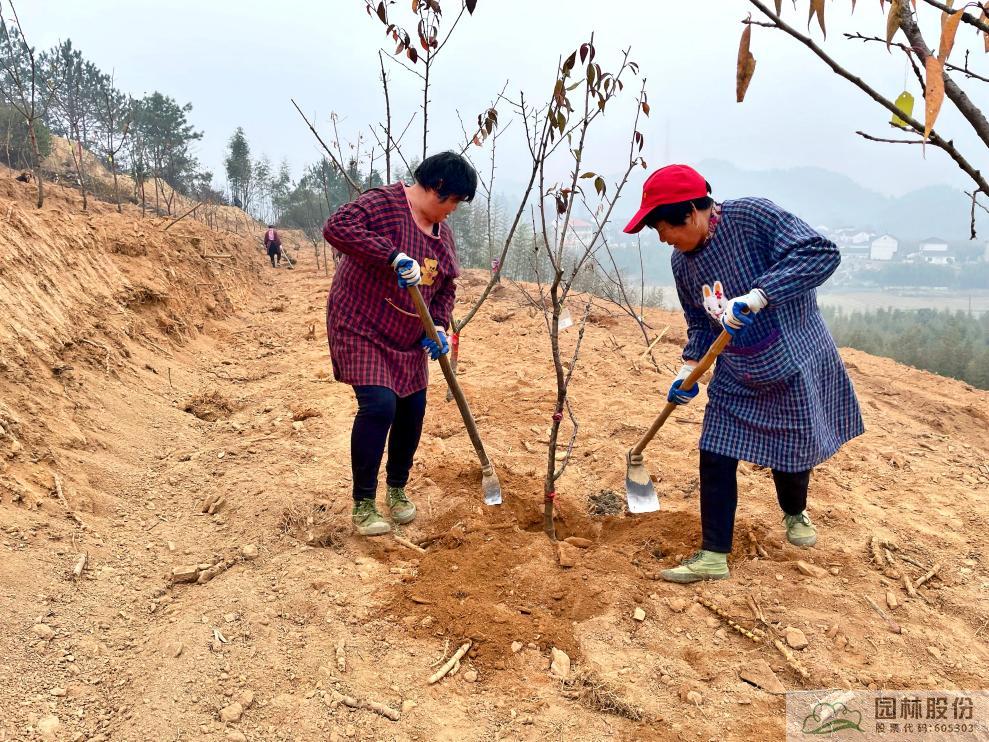 櫻花種質(zhì)資源圃規(guī)劃面積20畝,規(guī)劃品種150個(gè),定植櫻花500余棵。本次移栽的櫻花中,品種非常豐富,涵蓋早櫻、陽春櫻、晚櫻等,其中包含園林股份為授權(quán)單位的11個(gè)新品種櫻花。研究院副主任魏建芬、邱帥博士長期駐扎施工現(xiàn)場(chǎng)指導(dǎo)工作,針對(duì)每一個(gè)品種、每一顆苗木數(shù)量進(jìn)行清點(diǎn),認(rèn)真核對(duì)種植方位,確保品種不亂、數(shù)量正確。為保障工期,研究院的同事紛紛放棄休假,加班加點(diǎn)投入到項(xiàng)目中來,發(fā)揚(yáng)一不怕苦、二不怕累的精神,每天奔波在各個(gè)山頭之間,為項(xiàng)目的高水平建設(shè)作出積極貢獻(xiàn)。