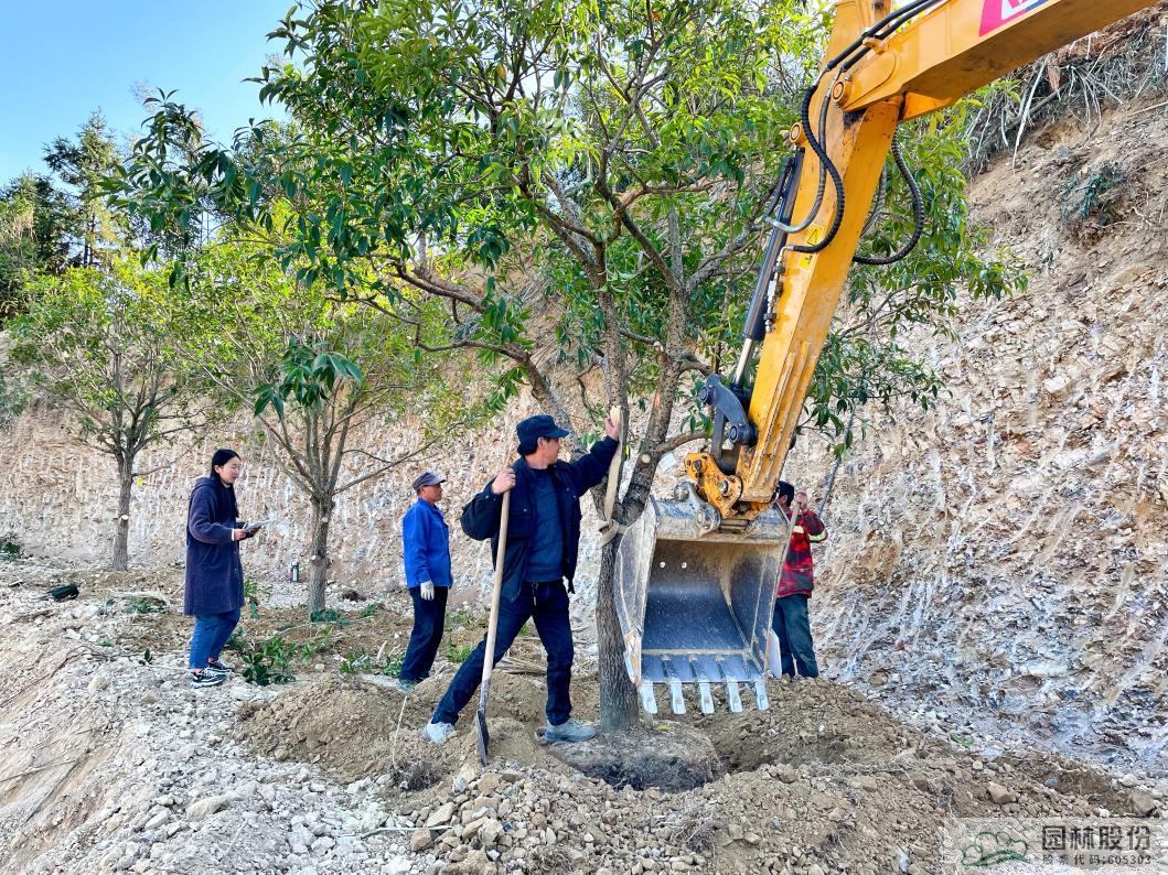 桂花種質(zhì)資源圃作為“國家桂花種質(zhì)資源庫”的重要組成部分,規(guī)劃面積50畝,項(xiàng)目建設(shè)包括捆綁修剪、苗木移栽、品種分類、基礎(chǔ)設(shè)施建設(shè)等工作?,F(xiàn)場(chǎng)負(fù)責(zé)人蔣興惠根據(jù)多年的苗木移栽經(jīng)驗(yàn)提出,桂花秋冬季節(jié)移栽能極大的提高存活率,要高質(zhì)高量推進(jìn)項(xiàng)目進(jìn)度,確保年前桂花資源圃建設(shè)好。面對(duì)桂花數(shù)量多、品種復(fù)雜、運(yùn)輸不便、吊裝難、山地可利用率低等難題,蔣興惠同志抓工期,趕時(shí)間,調(diào)集多臺(tái)挖機(jī)同步進(jìn)場(chǎng)施工,協(xié)調(diào)組織20多名工人進(jìn)行施工作業(yè),確保項(xiàng)目各項(xiàng)工作穩(wěn)步推進(jìn)。