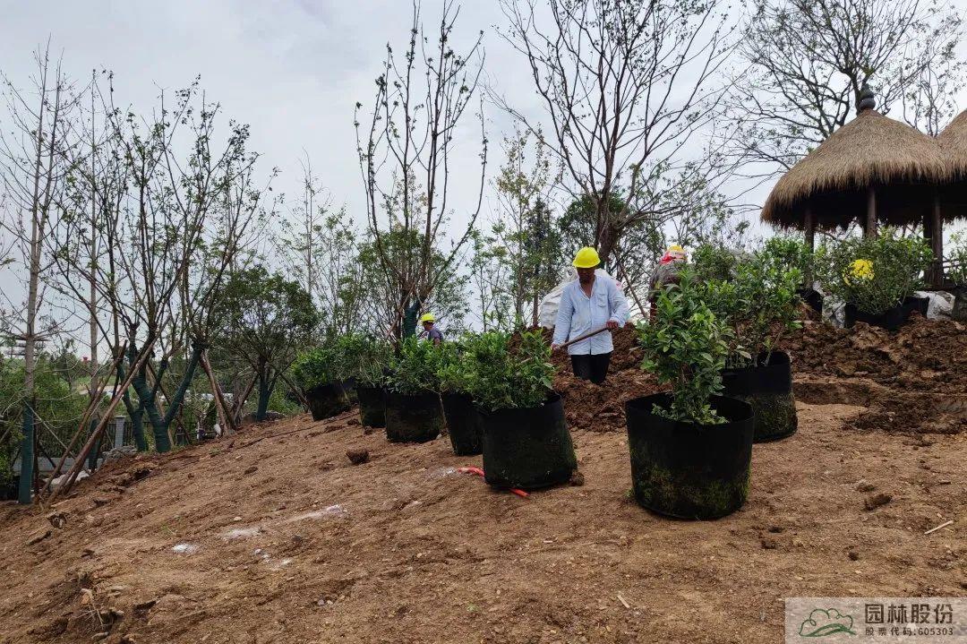 竹炭有機(jī)基質(zhì)主要是由竹纖維、有機(jī)氮肥、EM菌、生物炭、羊糞組合而成,經(jīng)過高溫發(fā)酵和堆肥腐熟,具有更輕質(zhì)、蟲卵雜草更少、疏松更透氣、性價(jià)比更高等優(yōu)勢,且竹炭資源可再生,生態(tài)環(huán)保。在全面綠化施工時,施工團(tuán)隊(duì)運(yùn)用竹炭有機(jī)基質(zhì)與回填土混合回填的方法種植喬木類,在地被植物方面則以竹炭有機(jī)基質(zhì)作為表層土平鋪。
